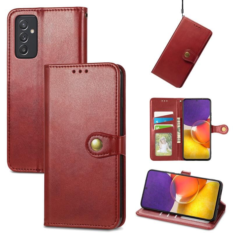 Για το Samsung Galaxy A82 5G Αμιγές χρώμα δερμάτινη θήκη τηλεφώνου με αγκράφα και κορνίζα φωτογραφιών, υποδοχή για κάρτες, πορτοφόλι και λειτουργία στάσης (Κόκκινο)
