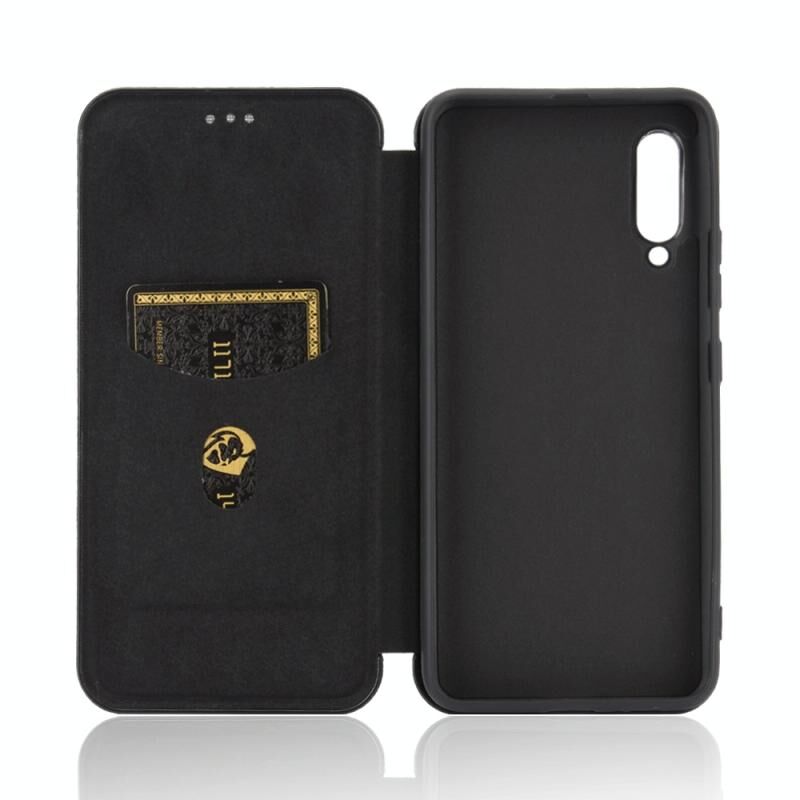 Θήκη για Samsung Galaxy A90 5G με υφή ανθρακονημάτων, οριζόντια, από TPU + PC + Δερματίνη PU με κορδόνι & θήκη για κάρτες (Μαύρο)