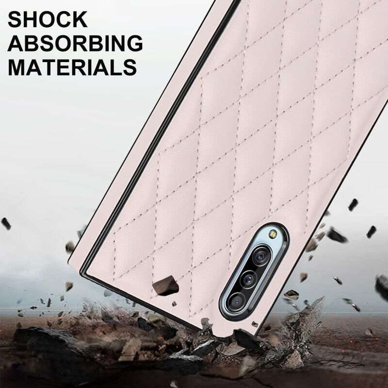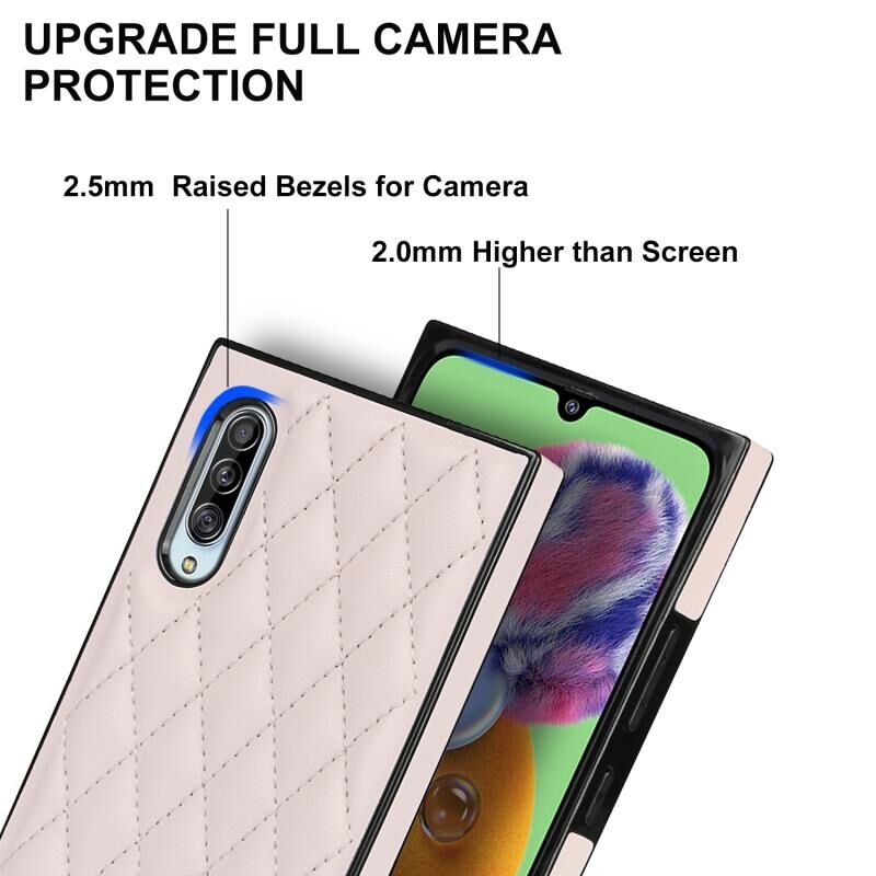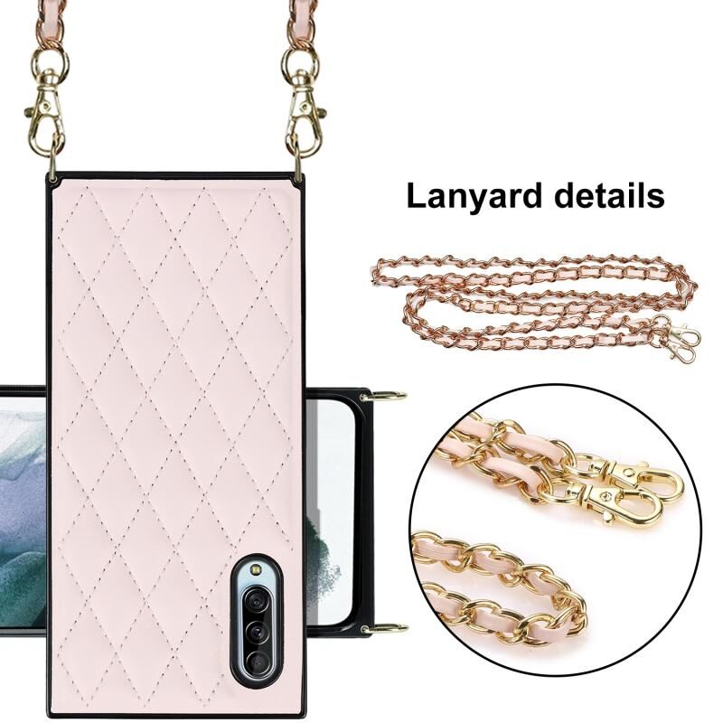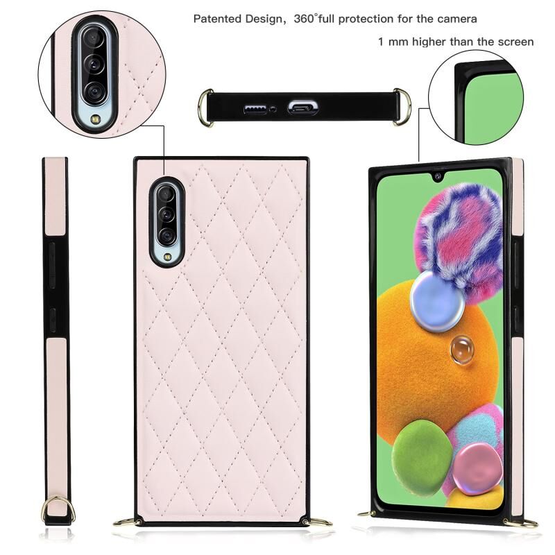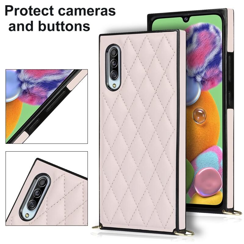 Για Samsung Galaxy A90 5G Κομψό ρομβοειδές μοτίβο μικροϊνών δέρμα +TPU Shockproof υπόθεση με αλυσίδα λουράκι σταυρού (ρόζ)