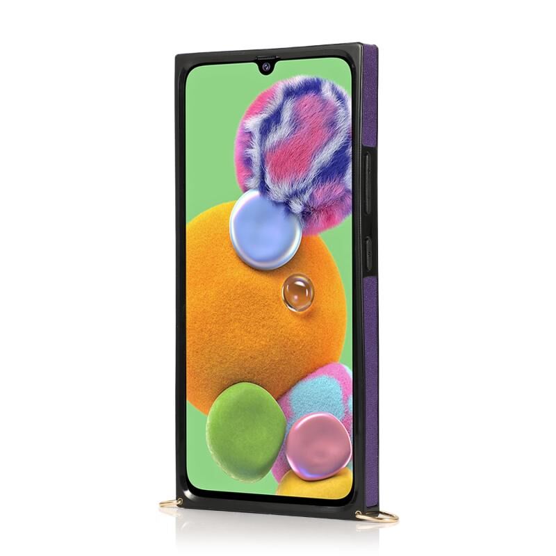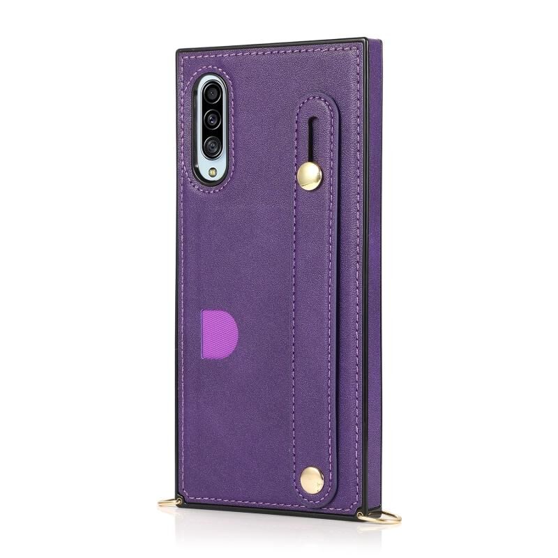 Για Samsung Galaxy A90 5G Λουρί καρπού Προστατευτική θήκη από PU+TPU αντικραδασμική με λουρί crossbody, βάση στήριξης & θήκη για κάρτες (Μωβ)
