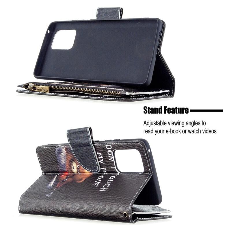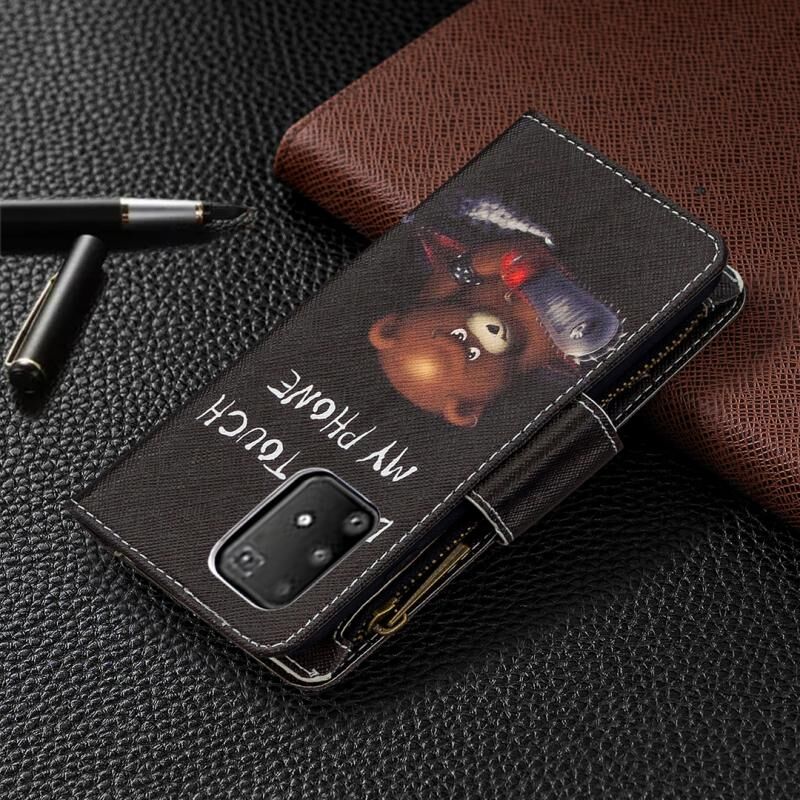 Θήκη Samsung Galaxy A91 με σχέδιο πολύχρωμης ζωγραφικής, οριζόντια, δερμάτινη με φερμουάρ, με βάση & θήκες για κάρτες & πορτοφόλι (Αρκούδα)