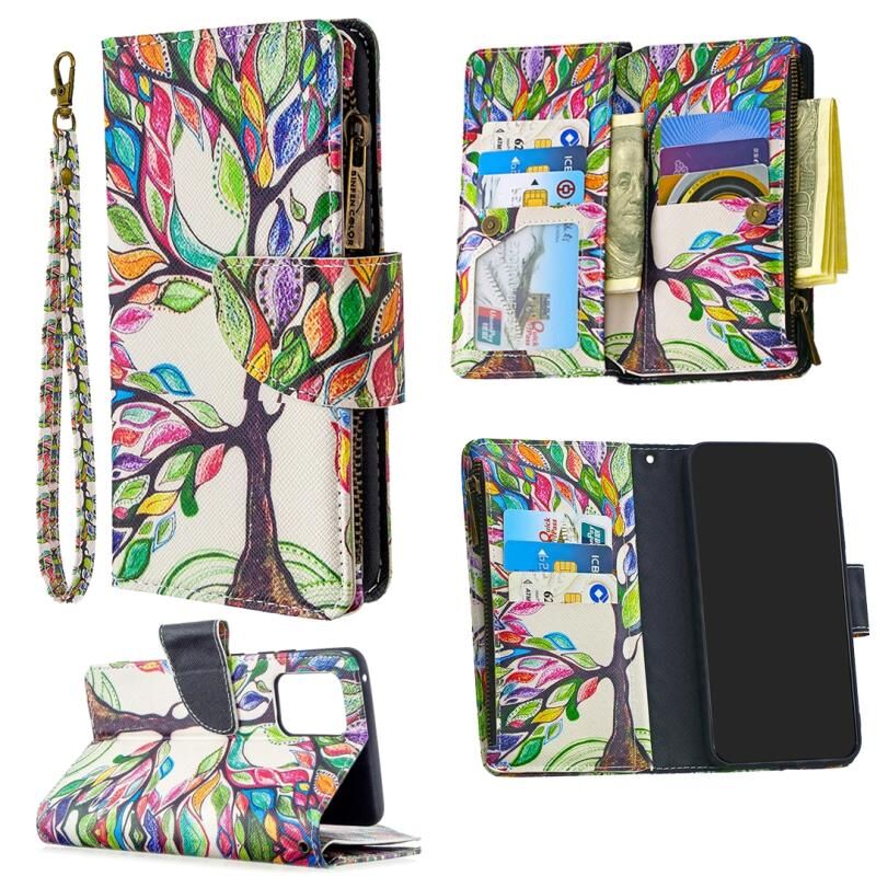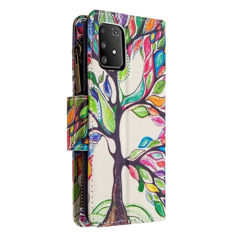 Θήκη Samsung Galaxy A91 με σχέδιο πολύχρωμης ζωγραφικής, οριζόντια, δερμάτινη με φερμουάρ, με βάση & θήκες για κάρτες & πορτοφόλι (Δέντρο)