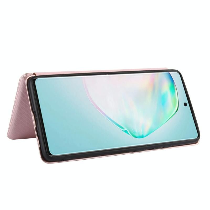 Για Samsung Galaxy A91 / M80s / S10 Lite Carbon Fiber Texture Horizontal Flip TPU + PC + PU Leather Case με σχοινί & υποδοχή κάρτας (ροζ)