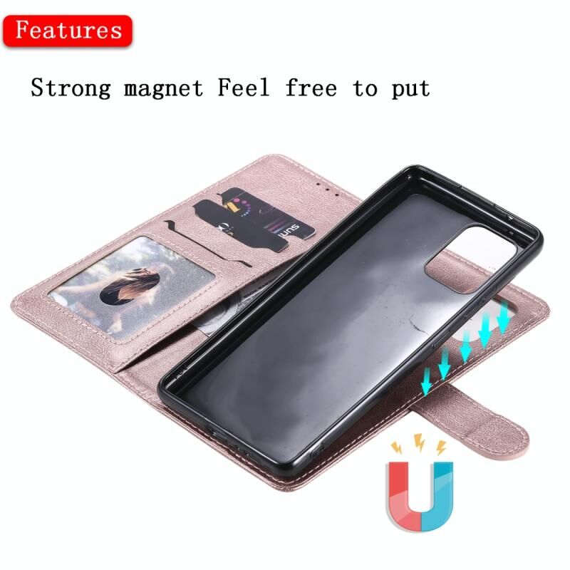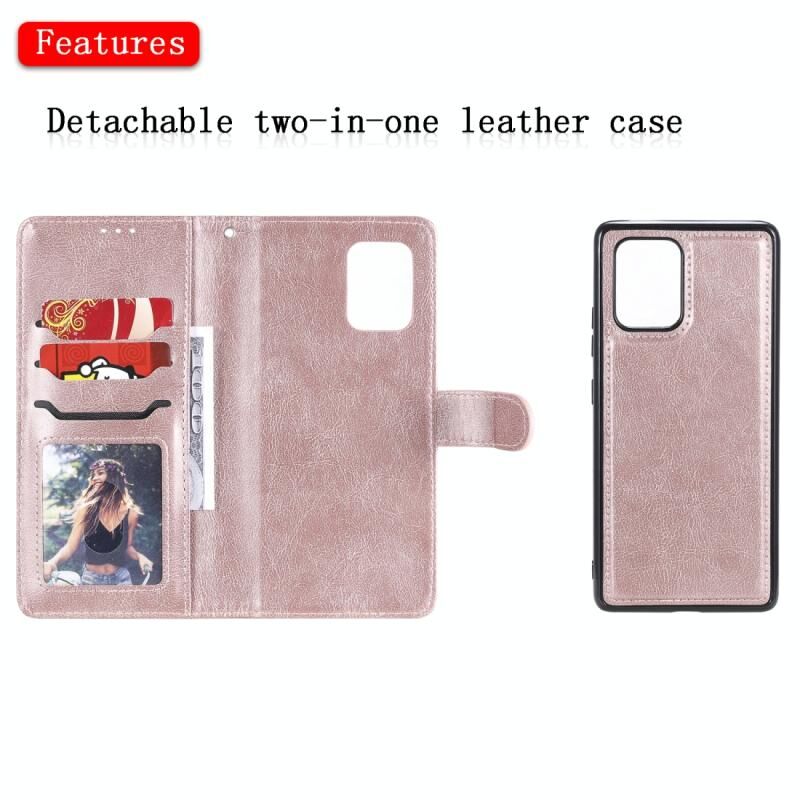 Για Samsung Galaxy A91 / S10 Lite 2 σε 1 Στερεόχρωμη Αποσπώμενη Θήκη Δερματίνης PU με Θήκες Καρτών & Μαγνητική Βάση & Κορνίζα Φωτογραφιών & Πορτοφόλι & Λουρί (Ροζ χρυσός)