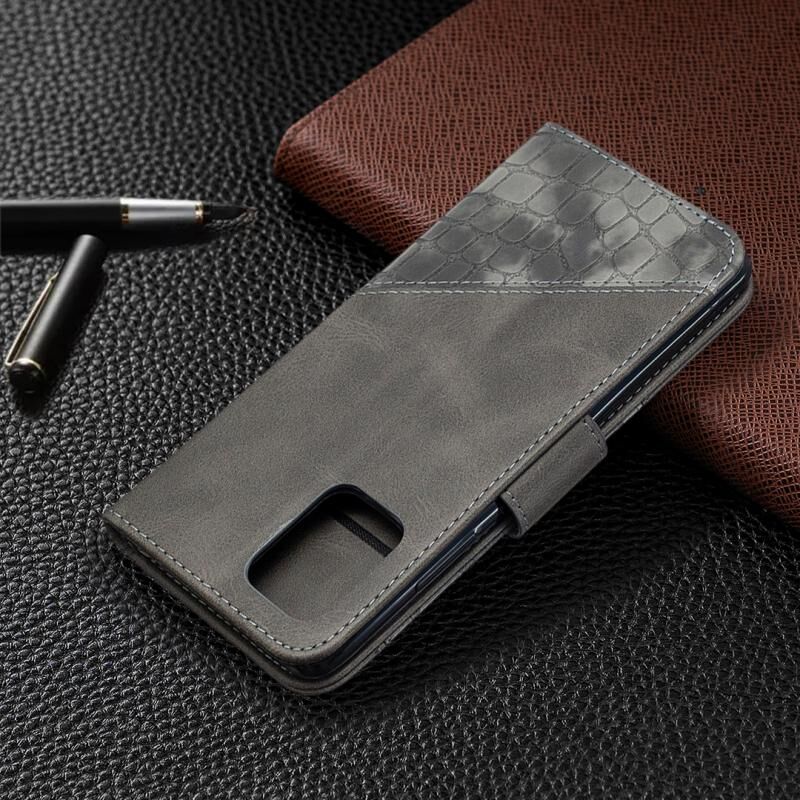 Θήκη οριζόντιας αναδίπλωσης από δερματίνη PU με υφή κροκόδειλου, σε ταιριαστό χρώμα για Samsung Galaxy A91 / S10 Lite, με πορτοφόλι, βάση & θήκες για κάρτες (Μπλε)