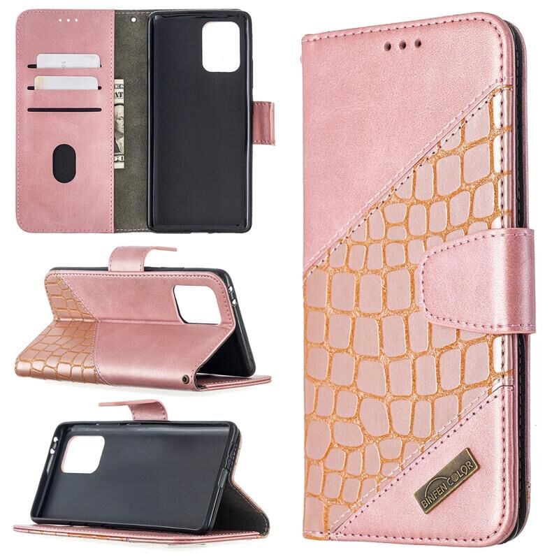 Θήκη οριζόντιας αναδίπλωσης από δερματίνη PU με υφή κροκόδειλου, σε ταιριαστό χρώμα για Samsung Galaxy A91 / S10 Lite, με πορτοφόλι, βάση & θήκες για κάρτες (Χρυσορόδινο)