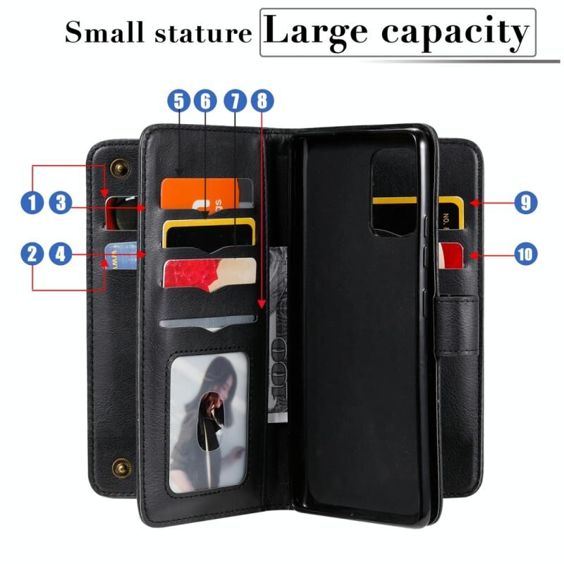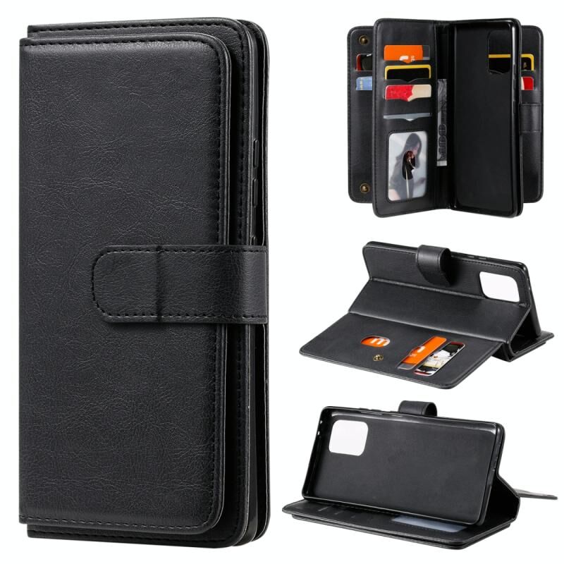 Θήκη για Samsung Galaxy A91 / S10 Lite, πολυλειτουργική, μαγνητική, με αγκράφα από χαλκό, οριζόντια, μονόχρωμη, από δέρμα, με 10 θήκες για κάρτες, πορτοφόλι, βάση στήριξης & κορνίζα φωτογραφιών (Μαύρο)