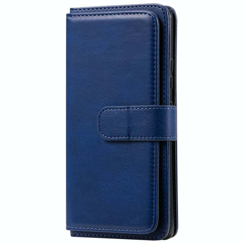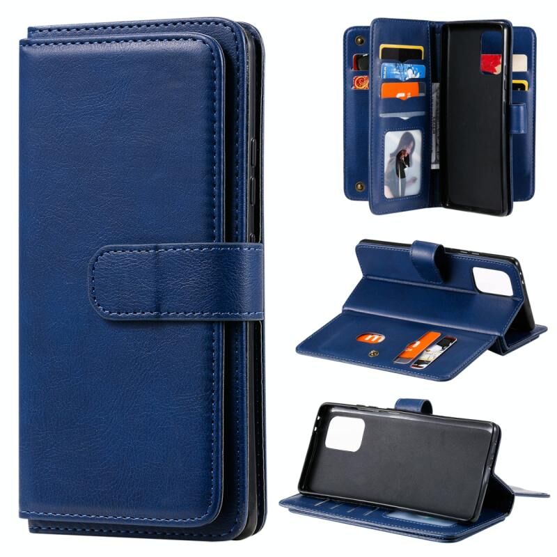 Θήκη Samsung Galaxy A91 / S10 Lite πολυλειτουργική μαγνητική με αγκράφα από χαλκό, οριζόντια, μονόχρωμη από δέρμα με 10 θήκες για κάρτες, πορτοφόλι, βάση & κορνίζα φωτογραφιών (Σκούρο μπλε)