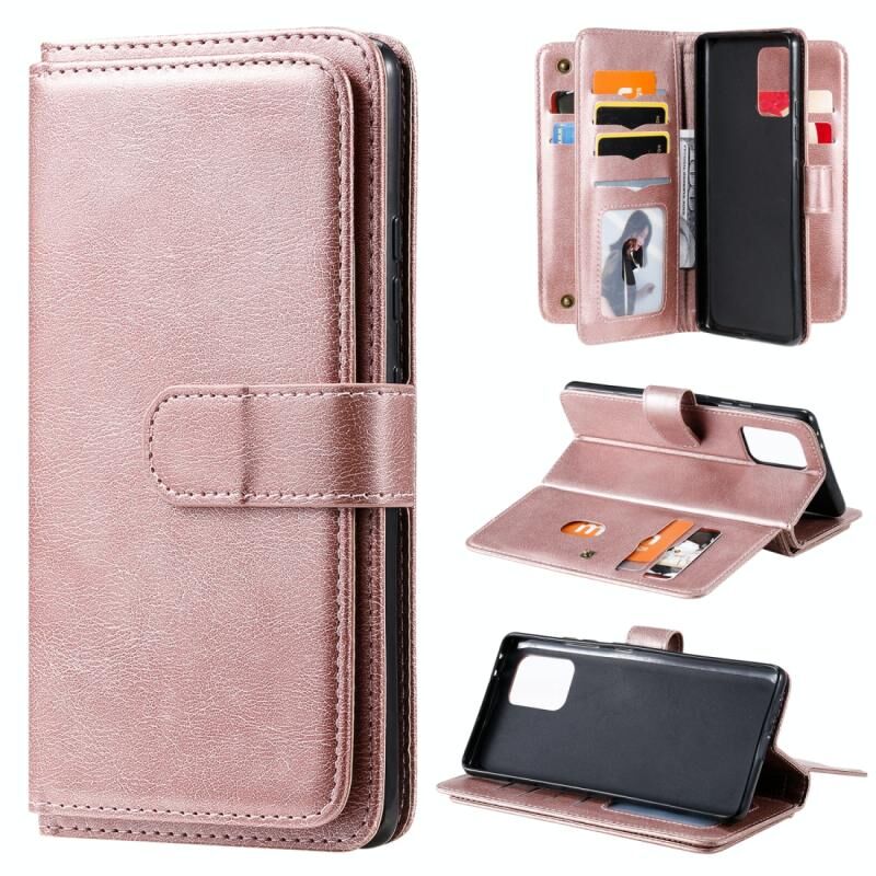 Θήκη για Samsung Galaxy A91 / S10 Lite, πολυλειτουργική μαγνητική με αγκράφα από χαλκό, οριζόντια, μονόχρωμη, από δέρμα με 10 θήκες για κάρτες, πορτοφόλι, βάση & κορνίζα φωτογραφιών (Ροζ χρυσός)