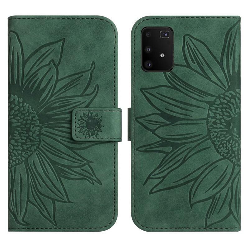 Για το Samsung Galaxy A91/S10 Lite δέρμα αίσθηση Sun Flower μοτίβο Flip δέρμα τηλέφωνο υπόθεση με κορδόνι (πράσινο)