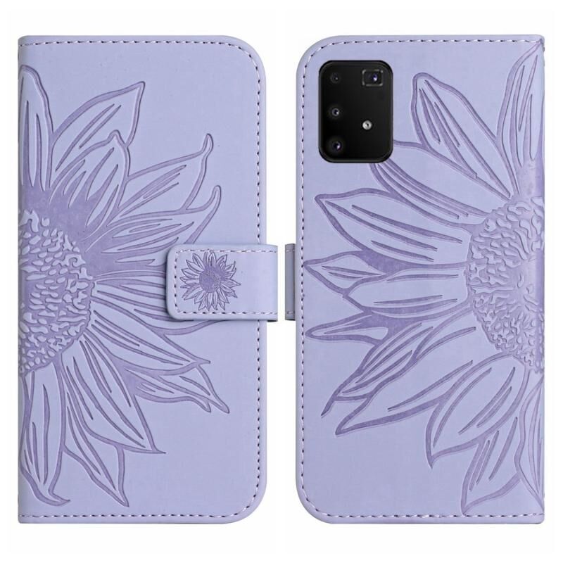Για το Samsung Galaxy A91/S10 Lite δέρμα αίσθηση Sun Flower μοτίβο Flip δέρμα τηλέφωνο υπόθεση με κορδόνι (μωβ)