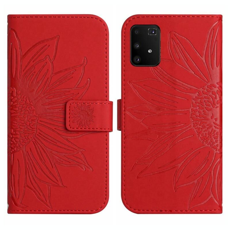 Για το Samsung Galaxy A91/S10 Lite δέρμα αίσθηση Sun Flower μοτίβο Flip δέρμα τηλέφωνο υπόθεση με κορδόνι (κόκκινο)