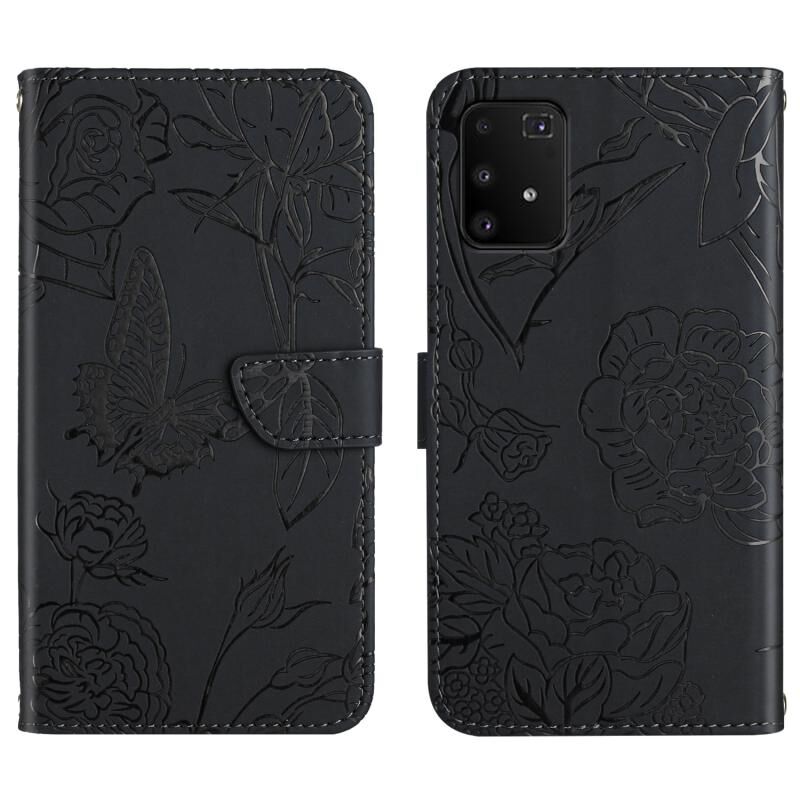 Θήκη τηλεφώνου Samsung Galaxy A91 με δερμάτινη υφή, ανάγλυφο σχέδιο πεταλούδας και παιώνιας (Κόκκινο)