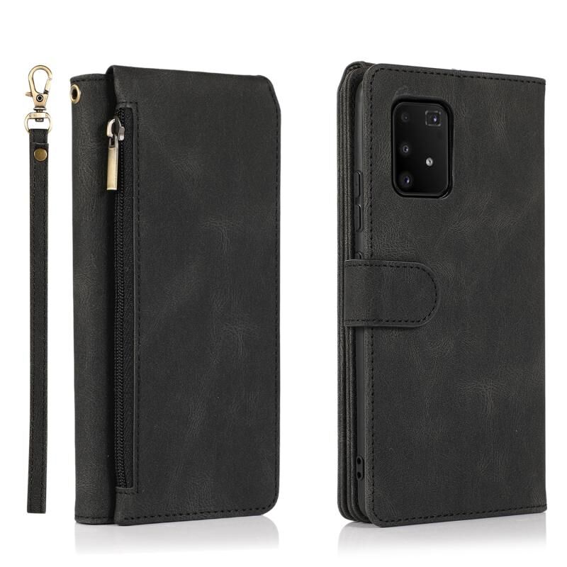 Για Samsung Galaxy A91 Skin-feel Crazy Horse υφή φερμουάρ τσάντα πορτοφόλι οριζόντια Flip δερμάτινη θήκη με κάτοχο & υποδοχές για κάρτες & πορτοφόλι & κορδόνι (Μαύρο)