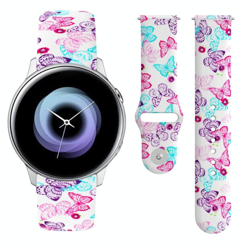 For Samsung Galaxy Active2 20mm Reverse Buckle Printed Silicone Watch Band(Butterfly)