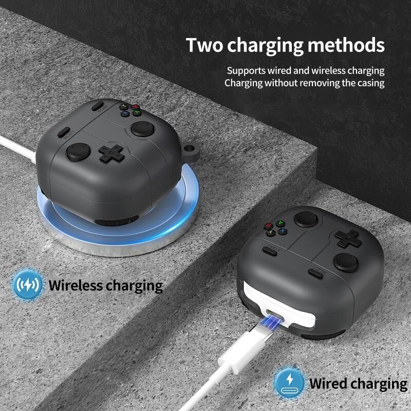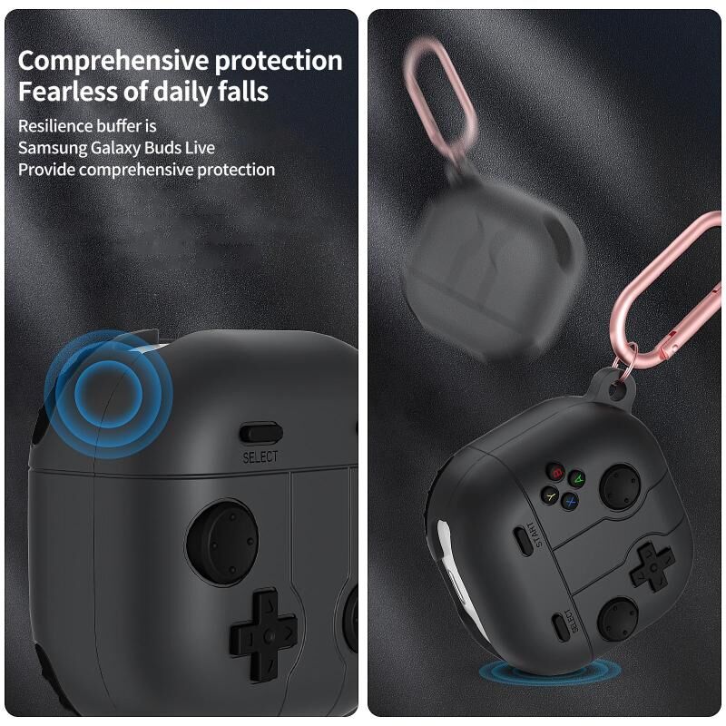 For Samsung Galaxy Buds Live Retro Game Console Style Silicone Earbuds Case(Dark Grey)