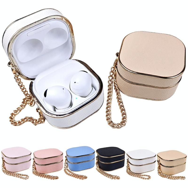 For Samsung Galaxy Buds2 / 2 Pro / Pro Litchi Texture Earbuds Box Leather Protective Case with Metal Bracelet(Purple)