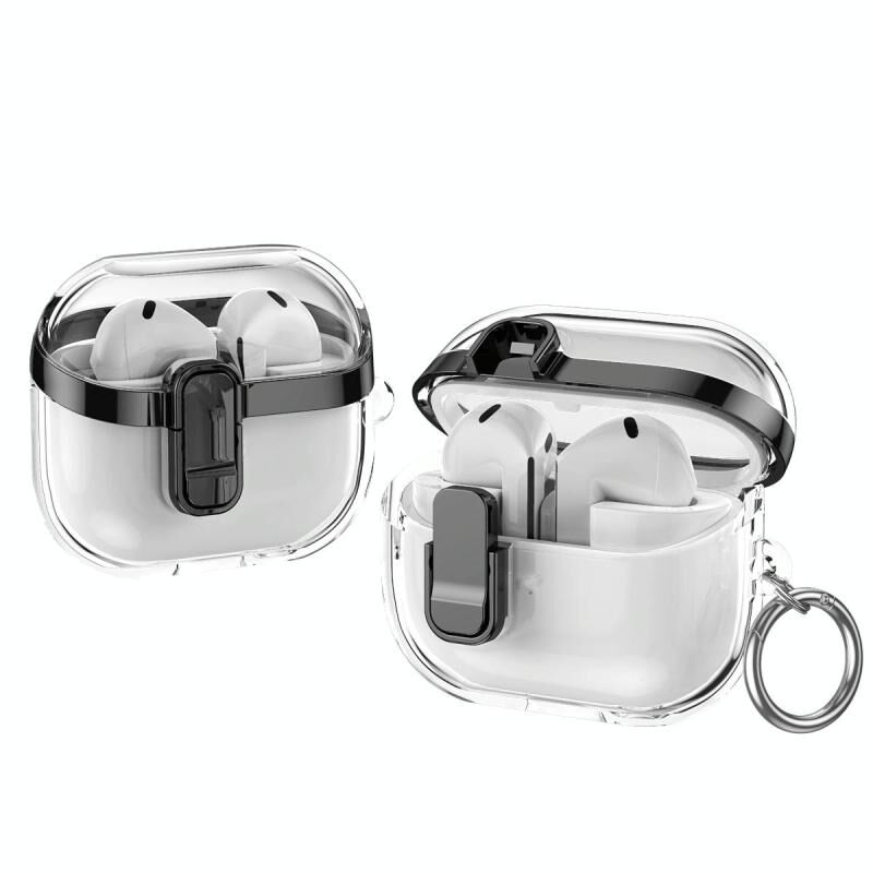 For Samsung Galaxy Buds3 / 3 Pro Electroplating Transparent Earphone Protective Case with Security Lock(Black)