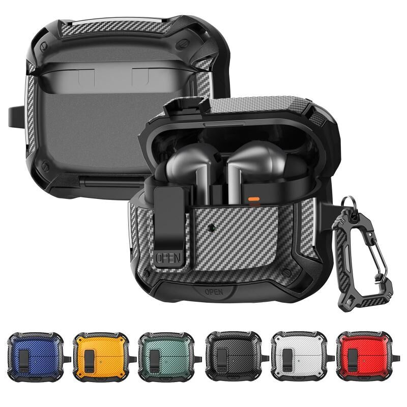 For Samsung Galaxy Buds3 / Buds3 Pro Bumblebee Fiber Texture Earphones Case with Hook & Holder(Black White)