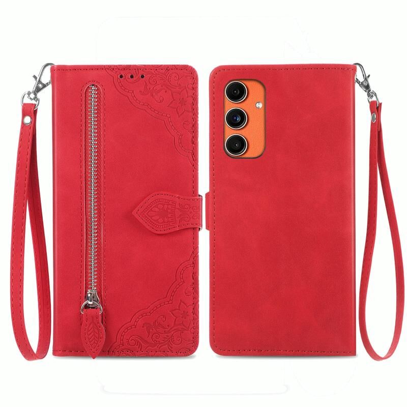 Για Samsung Galaxy C55 ανάγλυφο λουλούδι φερμουάρ δερμάτινη θήκη τηλεφώνου (κόκκινο)