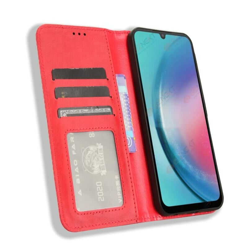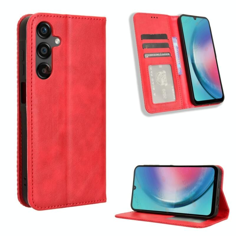 Για Samsung Galaxy C55 / M55 5G Μαγνητική πόρπη ρετρό υφή δερμάτινη θήκη τηλεφώνου (κόκκινο)