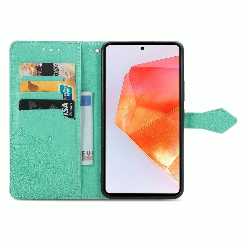 Για Samsung Galaxy C55 Mandala λουλούδι ανάγλυφο δερμάτινη θήκη τηλεφώνου (πράσινο)