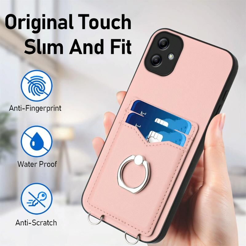 Για Samsung Galaxy F04 4G R20 Crossbody σχοινί δαχτυλίδι κάρτα κάτοχος υπόθεση τηλεφώνου (ρόζ)