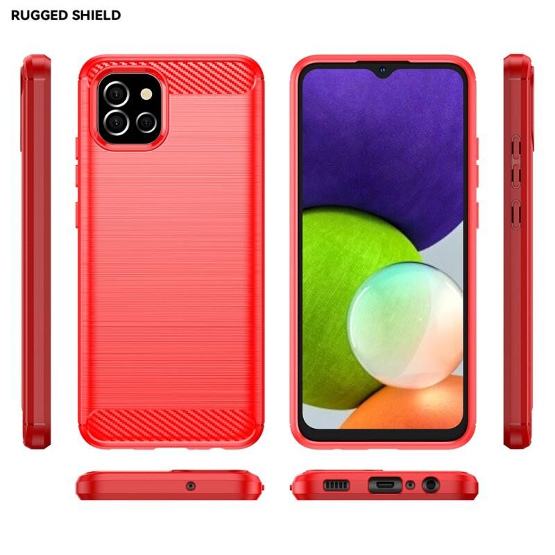 Για Samsung Galaxy F04 βουρτσισμένη υφή Carbon Fiber TPU υπόθεση τηλεφώνου (κόκκινο)