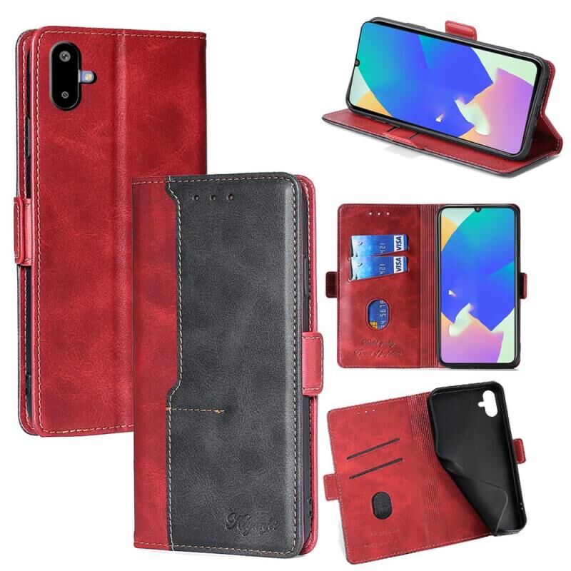 Θήκη τηλεφώνου δερμάτινη με πλευρική αγκράφα και αντίθεση χρωμάτων για Samsung Galaxy F06 5G (Μπλε + Γκρι)