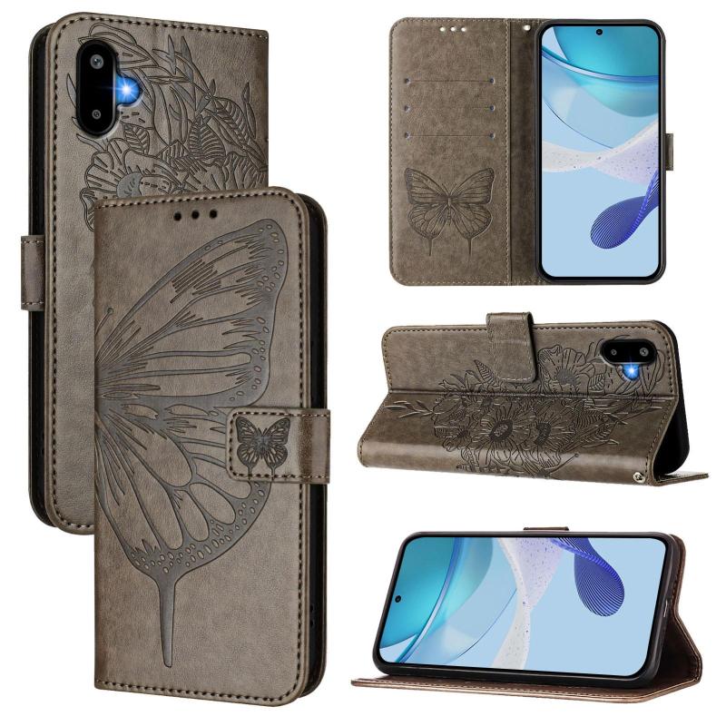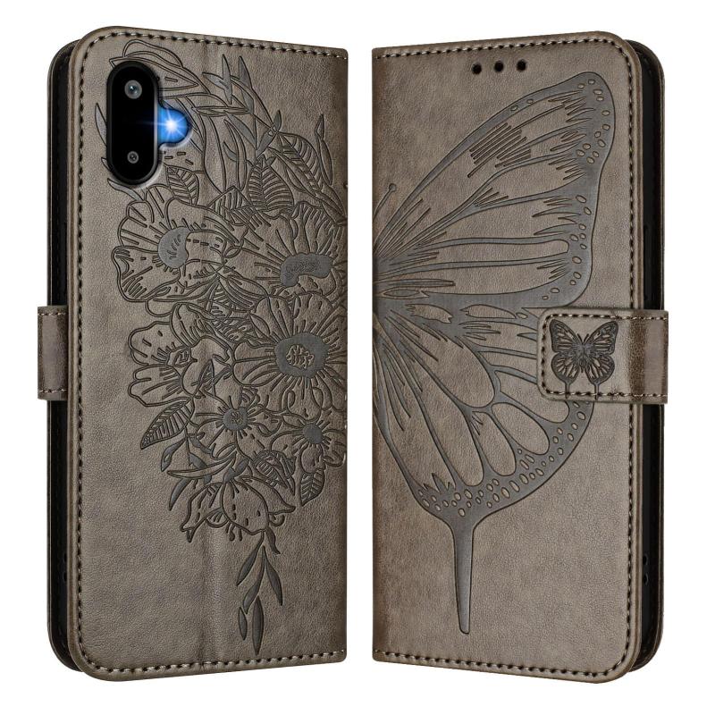 For Samsung Galaxy F06 5G / M06 5G Embossed Butterfly Leather Phone Case(Grey)