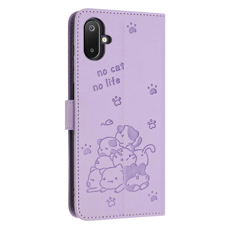 For Samsung Galaxy F06 5G / M06 5G Embossed Kitten Phone Leather Case with Lanyard(Purple)