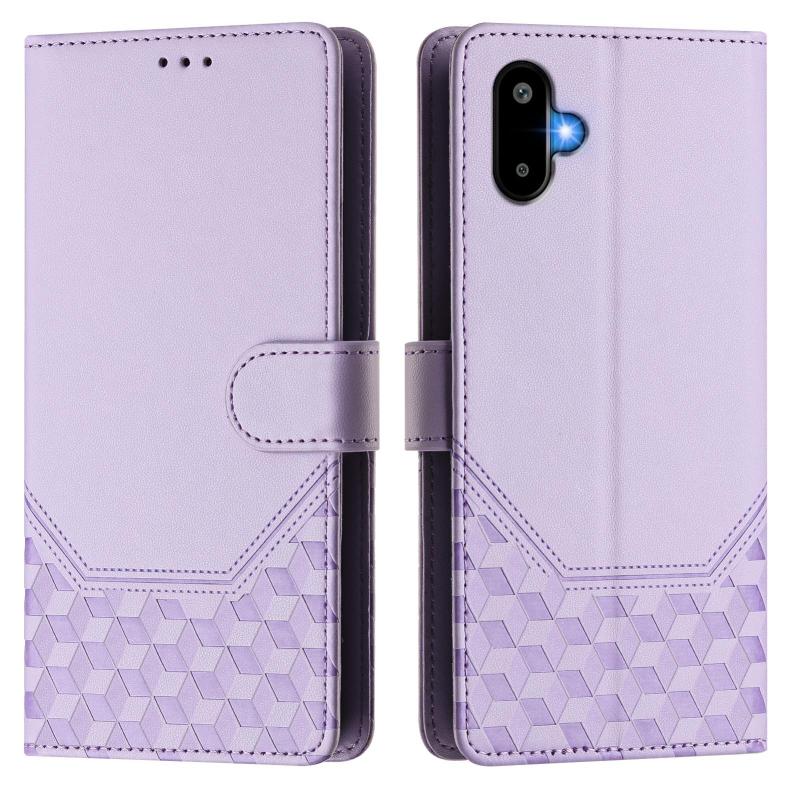 Θήκη τηλεφώνου Samsung Galaxy F06 5G / M06 5G από δέρμα με ανάγλυφο κηρήθρας και τεχνολογία RFID (Ανοιχτό Μωβ)
