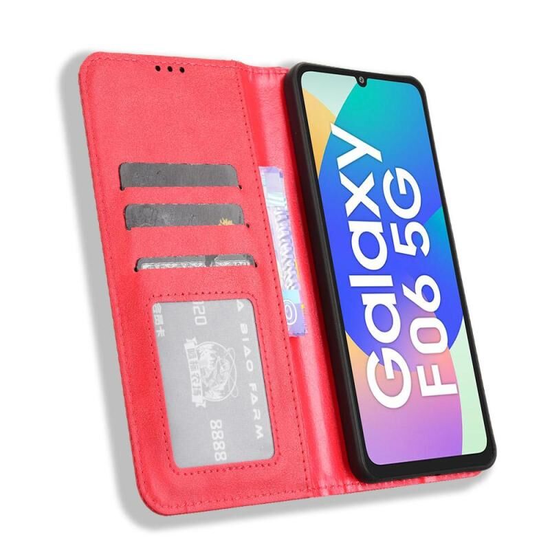 For Samsung Galaxy F06 5G / M06 5G Magnetic Buckle Retro Texture Leather Phone Case(Red)