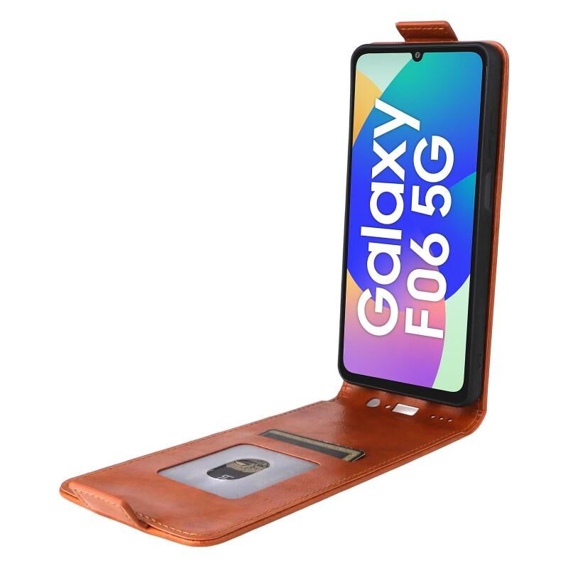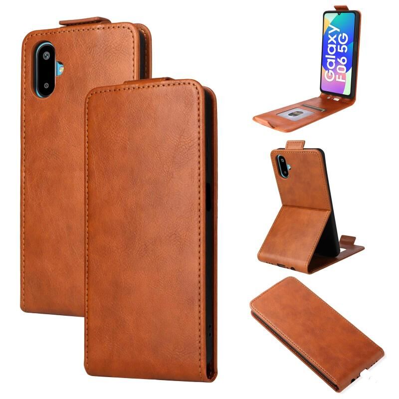 For Samsung Galaxy F06 5G / M06 5G Magnetic Vertical Flip Leather Phone Case with Buckle(Brown)