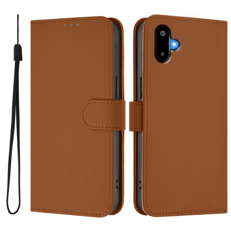 For Samsung Galaxy F06 5G / M06 5G Skin Feel Solid Color Leather Phone Case with Lanyard(Brown)