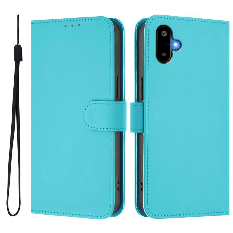 For Samsung Galaxy F06 5G / M06 5G Skin Feel Solid Color Leather Phone Case with Lanyard(Lake Blue)