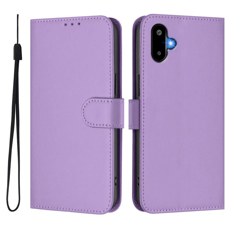 For Samsung Galaxy F06 5G / M06 5G Skin Feel Solid Color Leather Phone Case with Lanyard(Lavender Purple)