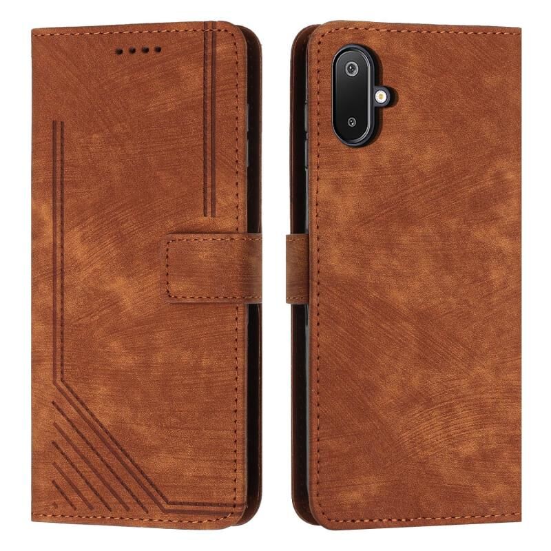 Θήκη τηλεφώνου Samsung Galaxy F06 5G / M06 5G από δέρμα με υφή δέρματος και ριγέ σχέδιο, με μακρύ κορδόνι (Καφέ)
