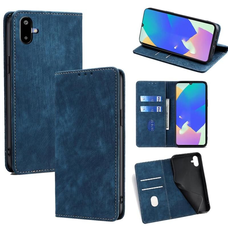 For Samsung Galaxy F06 5G RFID Anti-theft Brush Magnetic Leather Phone Case(Blue)