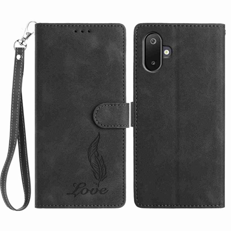 For Samsung Galaxy F06 5G Skin Feel Embossed Feather Leather Phone Case(Black)