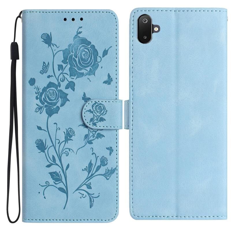 For Samsung Galaxy F06 Rose Flower Embossing Pattern Leather Phone Case(Sky Blue)