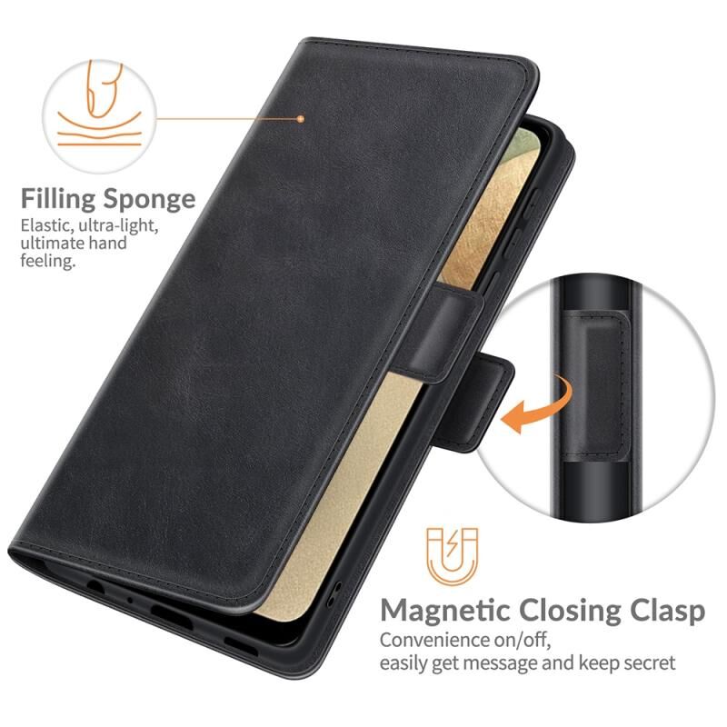 Για Samsung Galaxy F12 / M12 διπλής όψης μαγνητική πόρπη οριζόντια Flip δερμάτινη θήκη με θήκη & υποδοχές για κάρτες & πορτοφόλι (μαύρο)