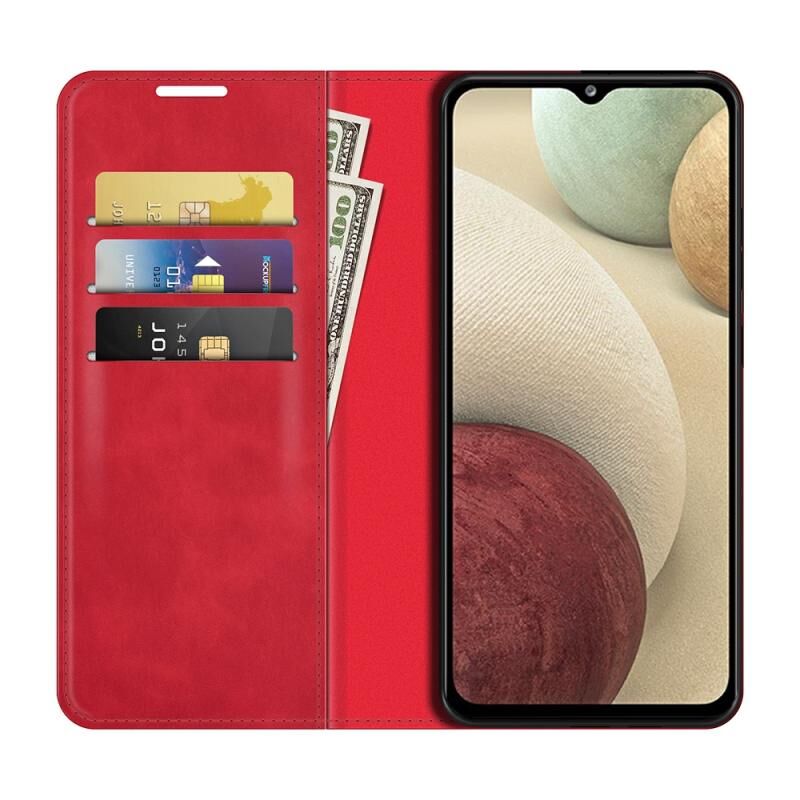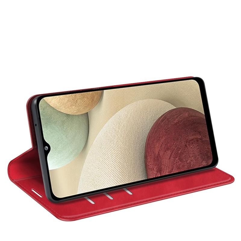 Για Samsung Galaxy F12 / M12 Retro-skin Business Μαγνητική δερμάτινη θήκη αναρρόφησης με θήκη & υποδοχές καρτών & πορτοφόλι (κόκκινο)
