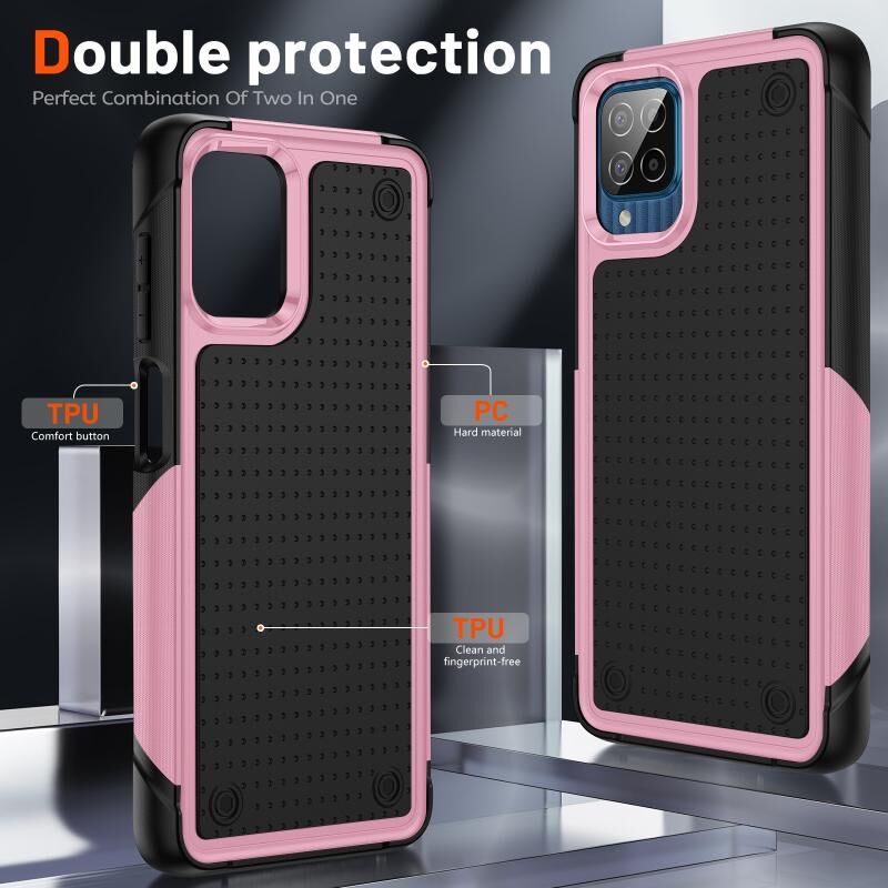 Για Samsung Galaxy F12 PC + TPU Shockproof προστατευτική θήκη τηλεφώνου (ροζ + μαύρο)