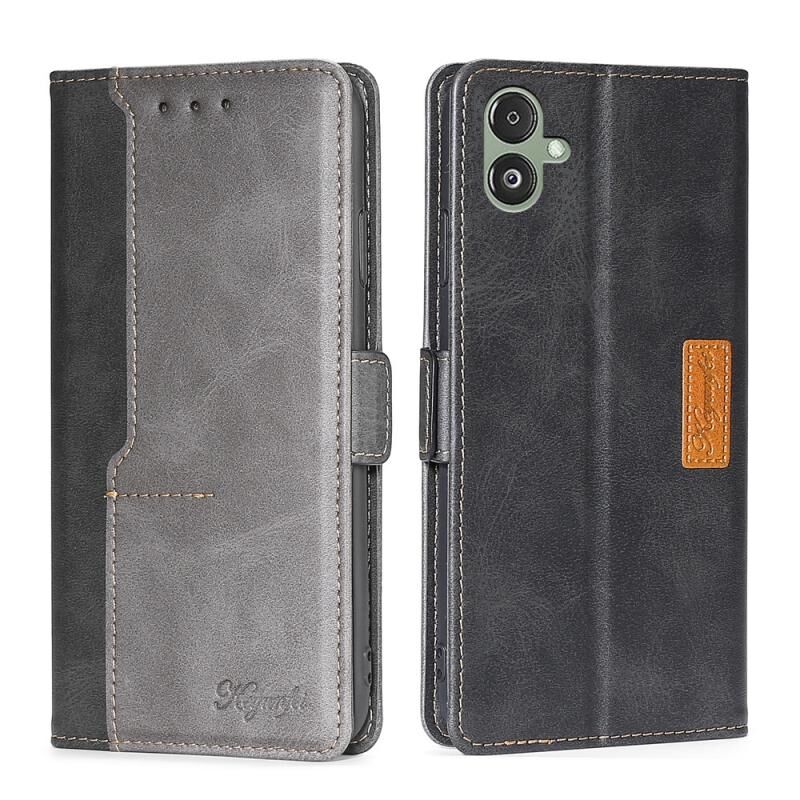 Για Samsung Galaxy F14 5G αντίθεση χρώμα πλευρά πόρπη δερμάτινη θήκη τηλεφώνου (μαύρο + γκρι)
