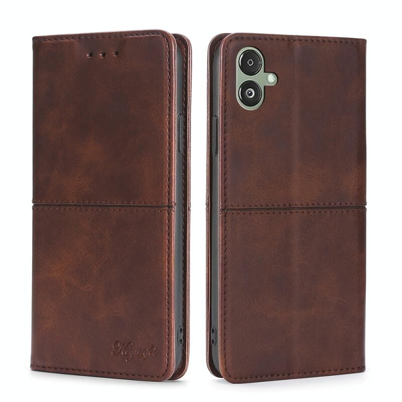 Για Samsung Galaxy F14 5G Αγελάδα υφή μαγνητική δερμάτινη θήκη τηλεφώνου (σκούρο καφέ)