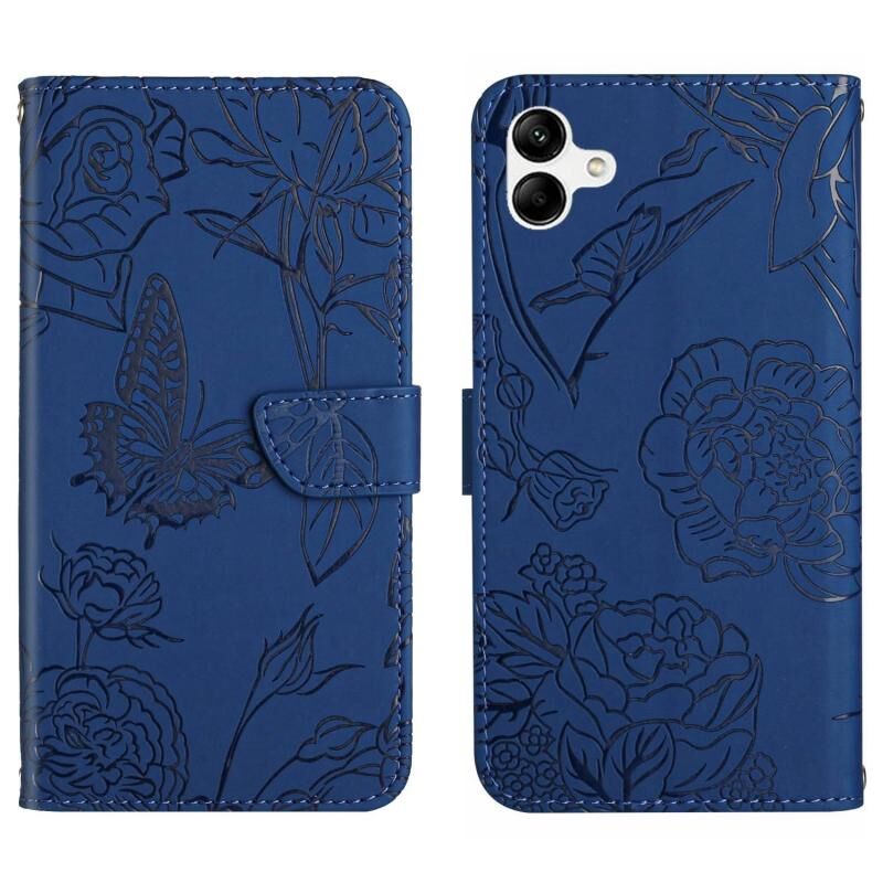 Θήκη τηλεφώνου Samsung Galaxy F14 5G Global HT03, Δερμάτινη, Flip, με ανάγλυφο σχέδιο πεταλούδας και αίσθηση δέρματος (Μωβ)