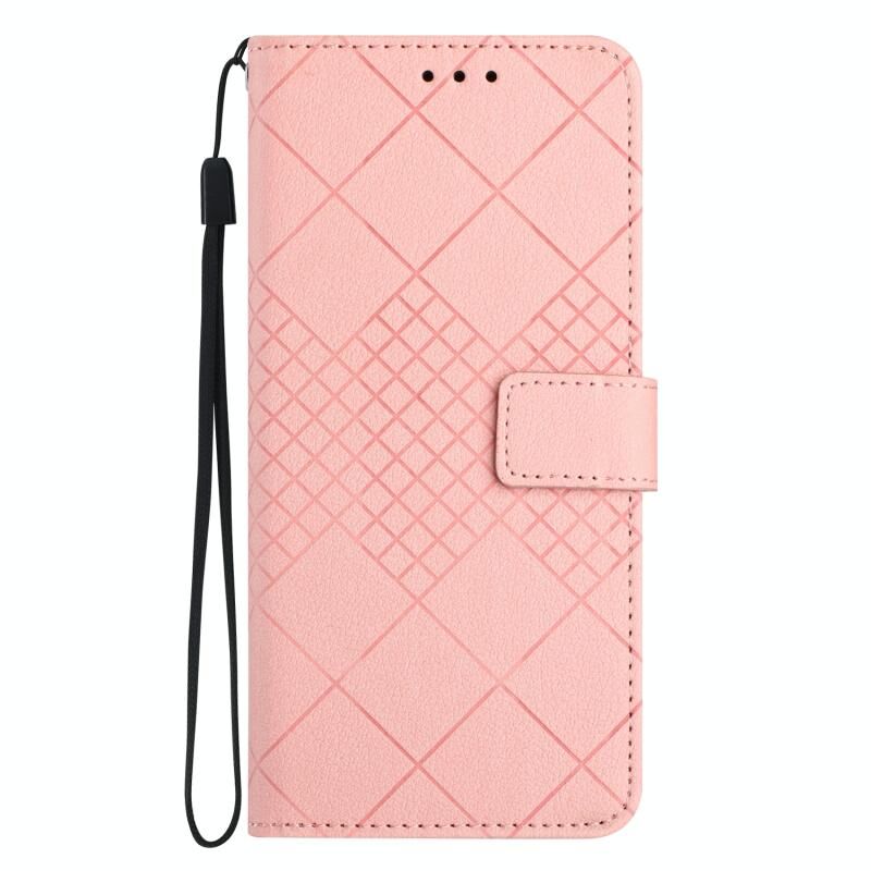 Θήκη τηλεφώνου δερμάτινη με υφή ρόμβου για Samsung Galaxy F14 5G (ρόζ)
