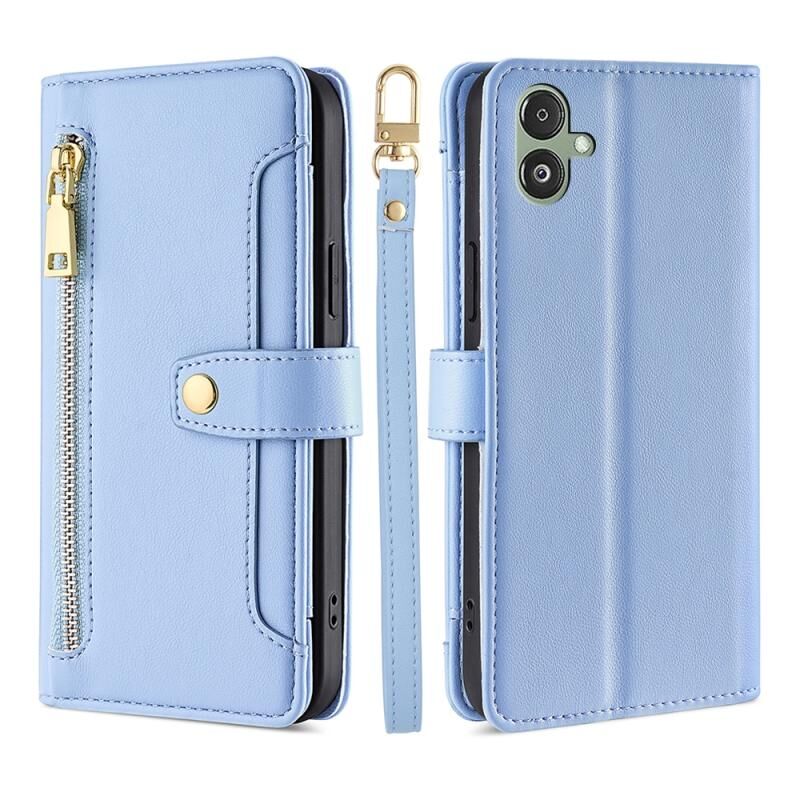 Για Samsung Galaxy F14 5G Πρόβατα Υφή Cross-body φερμουάρ πορτοφόλι δερμάτινη θήκη τηλεφώνου (μπλε)