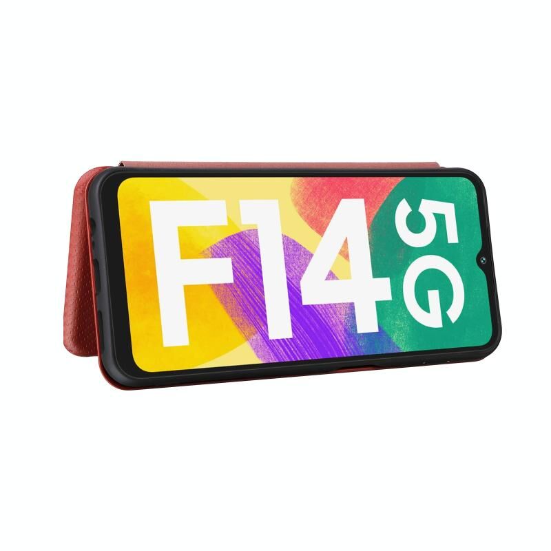 Για Samsung Galaxy F14 Carbon Fiber Texture Flip δέρμα τηλέφωνο υπόθεση (καφέ)
